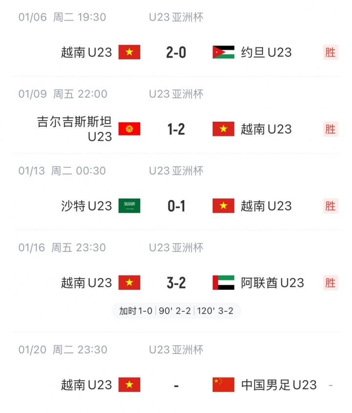 越南媒体:中国U23进四强真是奇迹 越南队这次进了8个球 是他们的8倍
